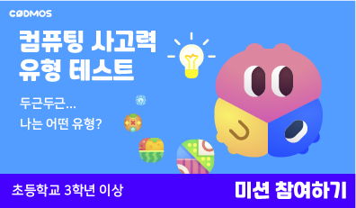◈ 컴퓨팅 사고력 테스트 (㈜로지브라더스) - (권장연령)초등학교 3학년 이상 - (내용)자료처리, 추론, 추상화, 자동화, 일반화 등 5개 영역의 컴퓨팅사고력 테스트를 통해 총 10가지 인물 유형 중 자신이 속한 유형을 확인 - (인증서)전체 스테이지 완료 시 발급(총 1회) - (사용기기/사용방법)PC, 태블릿 / 웹브라우저 - (최적화된 이용환경) (PC) 마이크로소프트 엣지, 크롬, 사파리 - (최소사양) Window 7, RAM 3G - (수업지원도구)튜토리얼 등