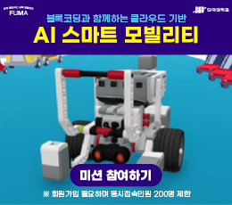 ◈ 클라우드 기반 AI 스마트 모빌리티(퓨처메이커스협동조합) - (권장연령)초등학교 5학년 이상 - (학습 프로그래밍 언어)구글 블록리(Blockly) - (내용)클라우드 서버의 3D 가상공간에서 실제와 동일한 로봇을 각 단계 미션을 블록코딩을 통해 수행하는 프로그램 - (인증서)각 스테이지 완료 시 발급(총 15회) - (사용기기/사용방법)PC / 웹브라우저 - (최적화된 이용환경) 크롬 - (최소사양) Window 7, RAM 4G 이상 - (수업지원도구) 튜토리얼 등 제공 ※ 회원가입(나이, 이름, 성별만 기입) 및 로그인 방식이며 시즌1 동시 접속 인원 200명으로 제한 (시즌2부터 인원제한 없음)