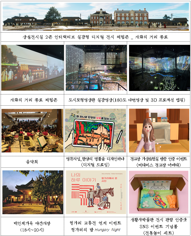 상설전시 재개관을 통하여 서울시내 공립박물관 최초로 선보이는 인터랙티브(상호작용) ‘실감형 디지털 전시 체험존’이 공개된다. 타임머신을 타고 ‘개화기 종로 거리’로 시간 이동을 하여 전차를 탑승해보고 개화기 신문물을 실감나게 체험하는 몰입형 가상현실 세계를 여행할 수 있다.